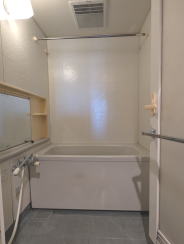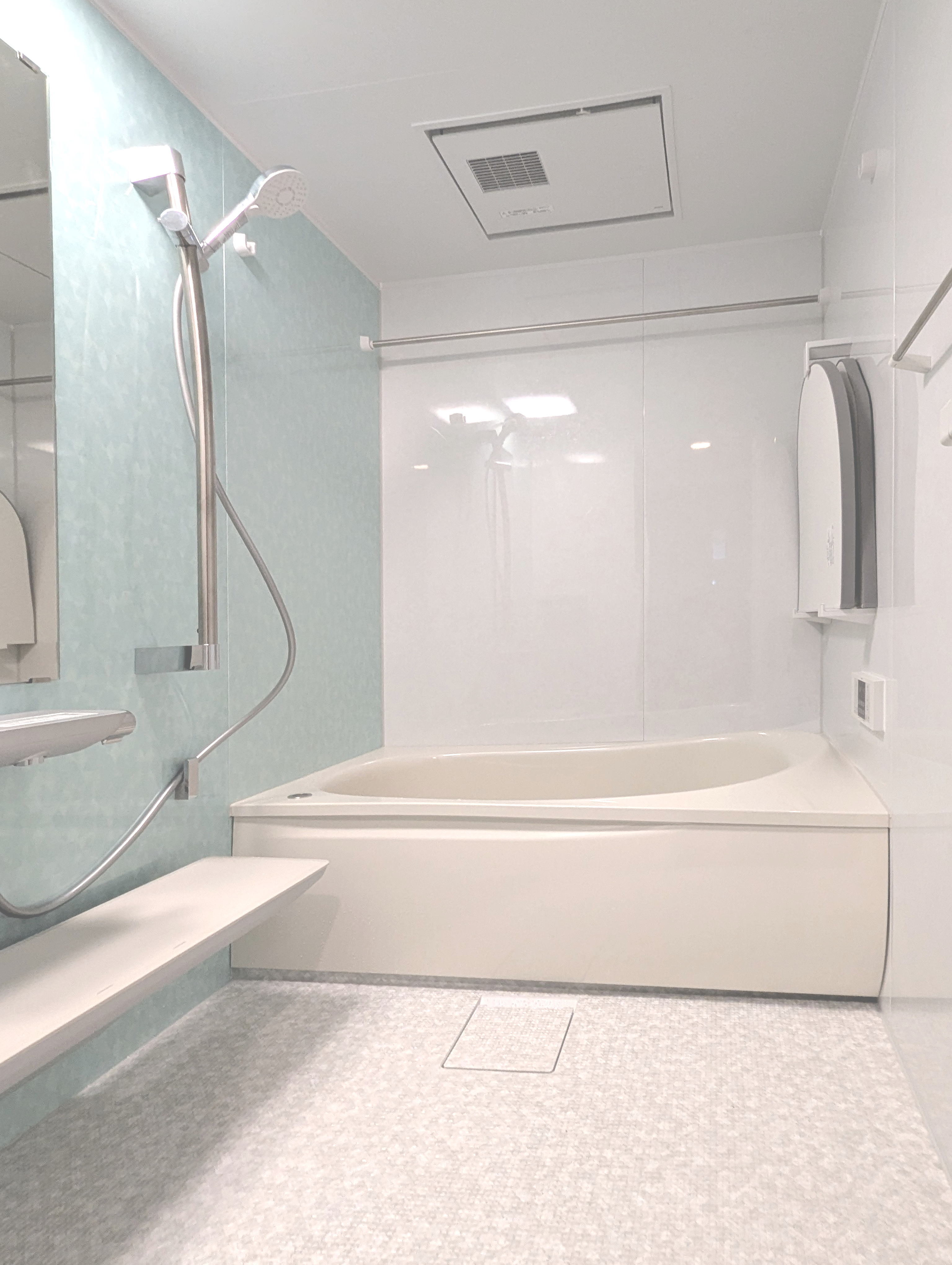 After 浴室![]() JIS高断熱浴槽の基準を満たした浴槽です。ほっカラリ床で足元も冷気をシャットアウト。さらに暖房乾燥機「三乾王」も搭載して、あたたかいが続きます。 |
