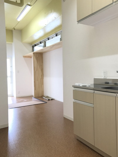 ![]() 面談室と倉庫 パステルカラーの引き戸は色違い、これから 取り付けします。 |